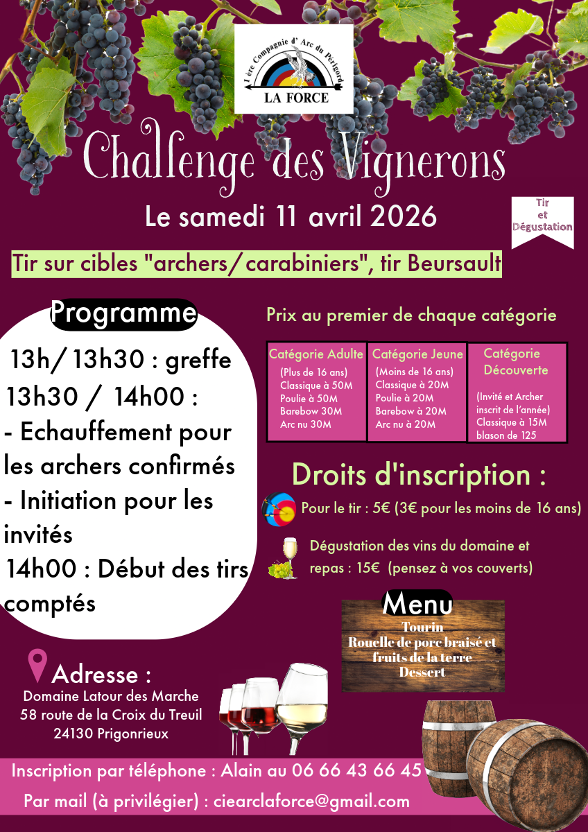 La 1 ère Compagnie d'Arc du Périgord organise son challenge des vignerons, à La Force, le 11 avril.