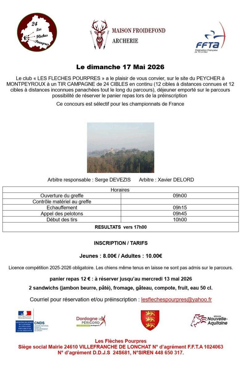 Le concours Campagne de Villefranche-de-Lonchat se tiendra le 17 mai 2026 à Montpeyroux. Le mandat est disponible sur notre page "Mandats & Résultats" !
