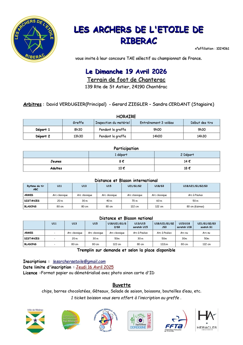 Le concours TAE de Ribérac se tiendra le 19 avril 2026 à Chantérac. Le mandat est disponible sur notre page "Mandats & Résultats" !