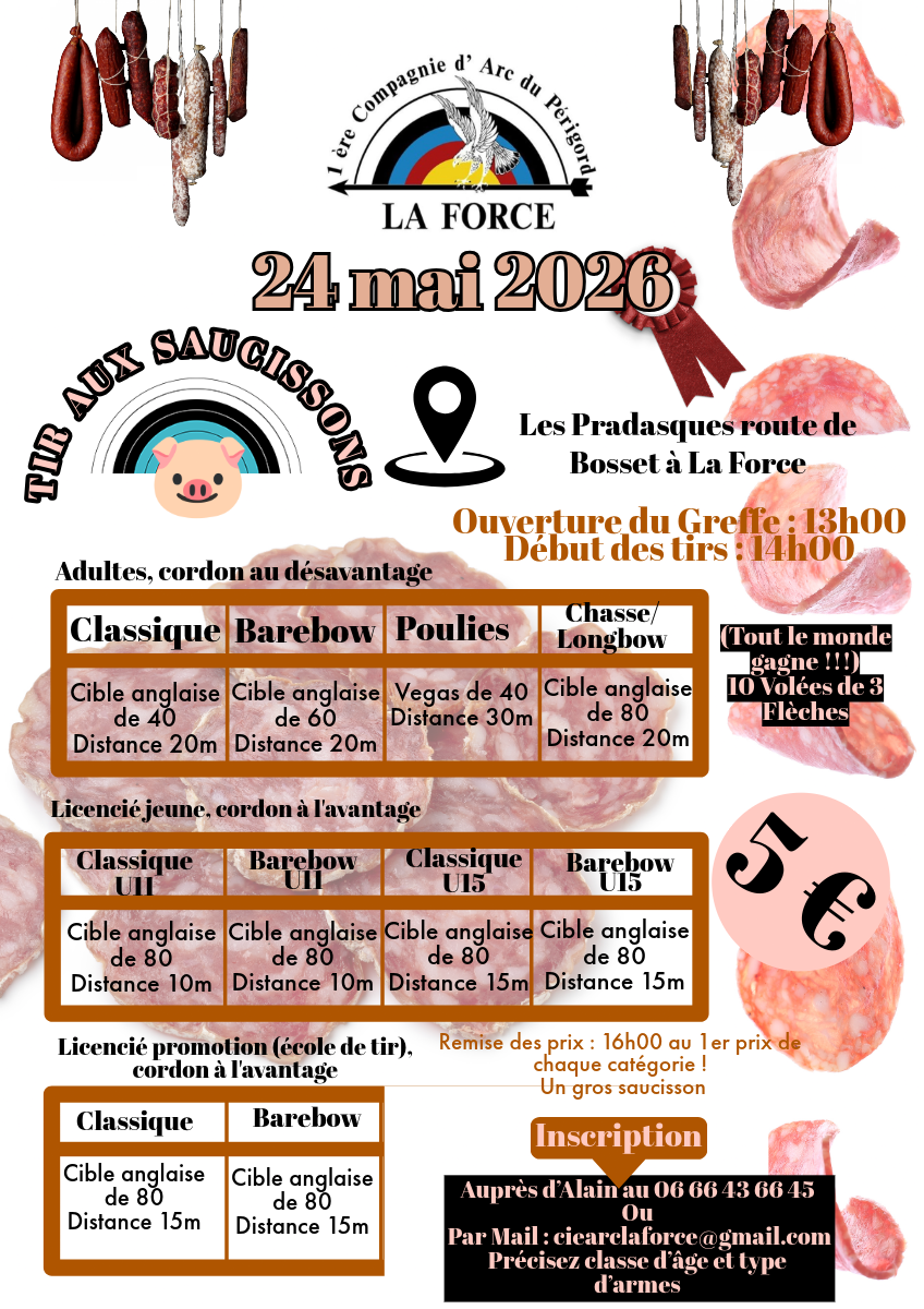 La 1 ère Compagnie d'Arc du Périgord organise son annuel tir aux saucissons, à La Force, le 24 mai.